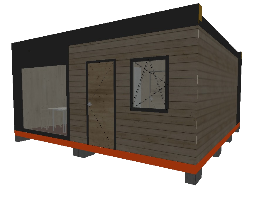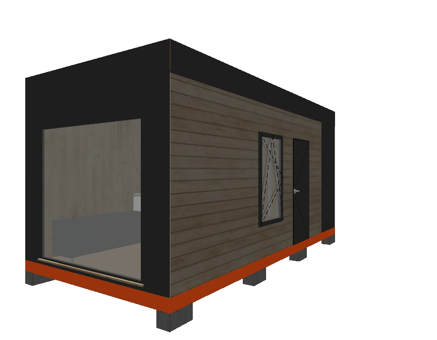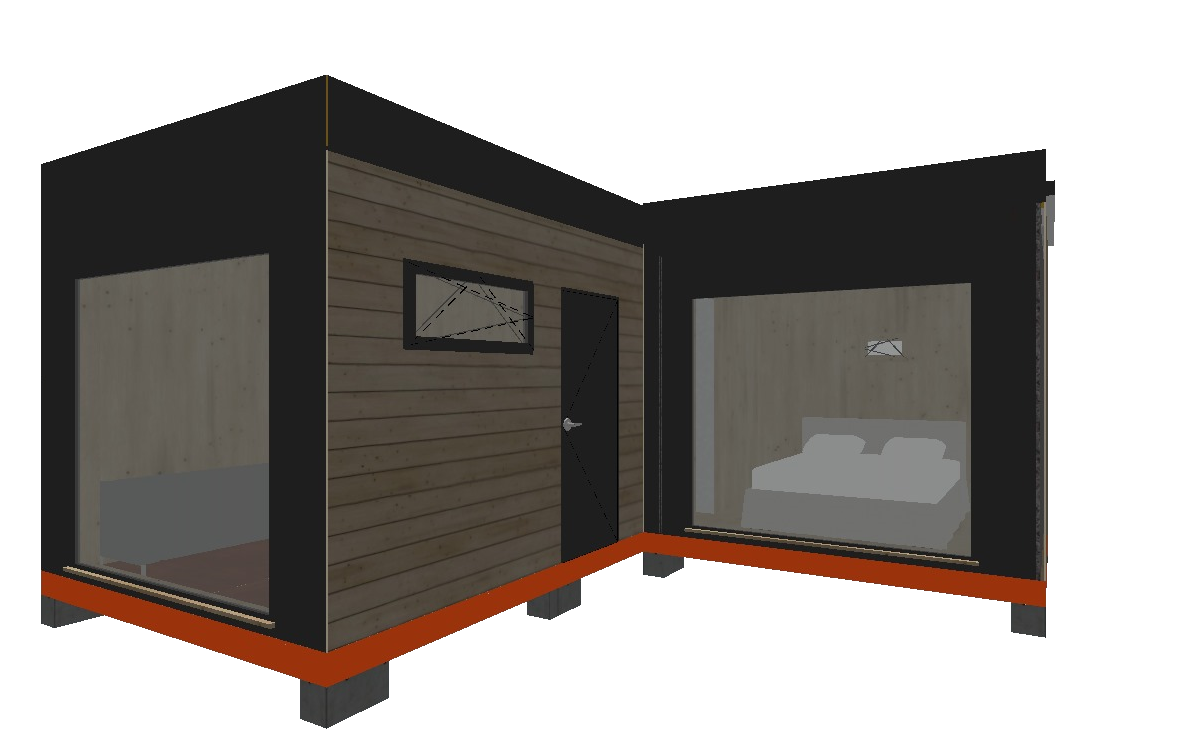 - "Амбиверт" спаренный модуль 6 х 3 х 3 м и 2.5 х 3 х 3 м. Включает в себя спальню, кухню-гостинную и санузел.